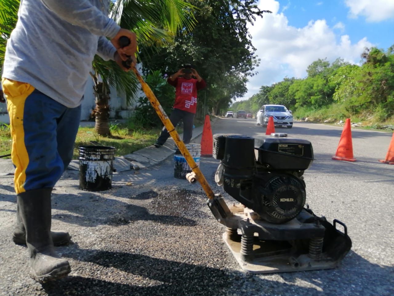 PLAYA DEL CARMEN, Quintana Roo, 27 de noviembre.- Continúan los trabajos de bacheo en Playa del Carmen, a través de la Dirección General de Servicios Públicos Municipales se mantienen los trabajos de bacheo en diferentes puntos de la ciudad; en atención a mantener calles y avenidas en buen estado y promoviendo la prevención de accidentes viales.