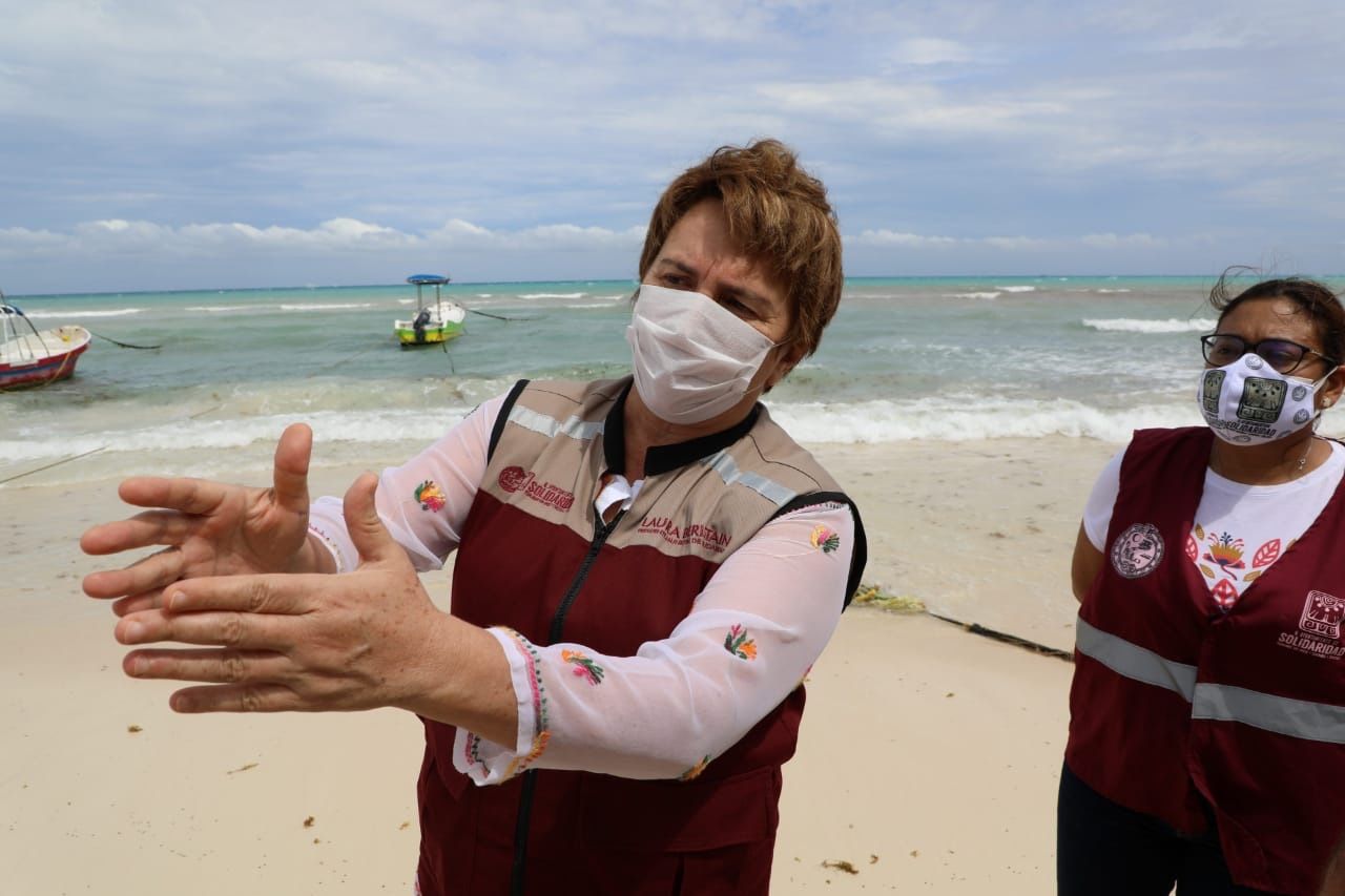 PLAYA DEL CARMEN, Quintana Roo, a 07 de junio.- La presidente municipal de Solidaridad, Laura Beristain Navarrete, informó que para garantizar la limpieza de las playas se redoblarán esfuerzos en las labores de contención del sargazo en su arribo a las costas del municipio.