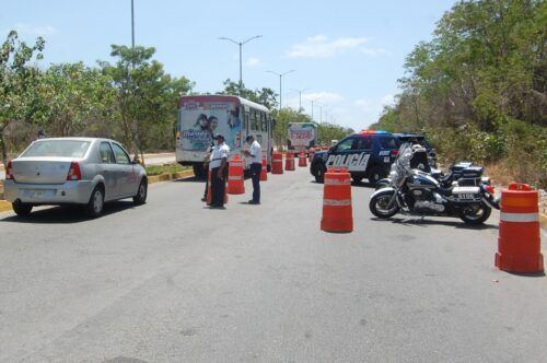 En este sentido sobre el puente vial en el boulevard Playa del Carmen, solo está permitida la circulación para atravesar la ciudad de entrada y salida en ambos sentidos, ya que los ascensos y descensos laterales se encuentran cerrados.