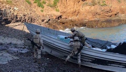 En un informe al respecto, la dependencia detalló que, a orilla del área de playa conocida como La Bufadora, en el ejido Esteban Cantú, elementos militares localizaron una embarcación tipo pescadora, con tres motores fuera de borda.