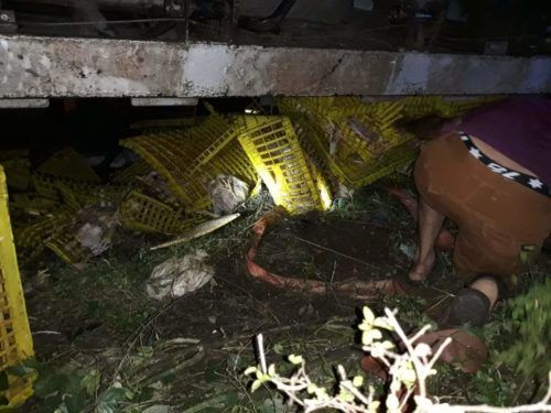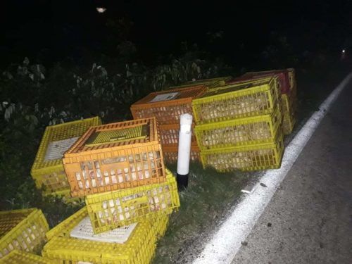 JOSÉ MARÍA MORELOS, Quintana Roo, 24 de junio.- De nueva cuenta, el tramo José María Morelos- Polyuc vuelve a ser escenario de un accidente vehicular, en esta ocasión se vio involucrado un tráiler con cargamento de pollos.