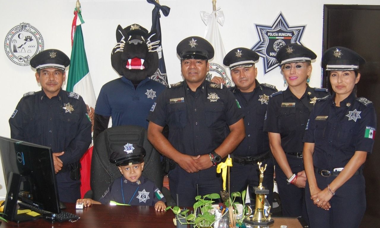 En el marco del programa “Policía Cerca de Ti” que promueve la presidenta municipal, Laura Beristain Navarrete, la Dirección General de Seguridad Pública y Tránsito de Solidaridad que dirige el comandante Jorge Robles Aguilar, nombró director de la “Policía Municipal por un Día”, al niño Miguel Fernando Cruz Zamudio, de 5 años de edad, para cumplir su sueño de ser policía.