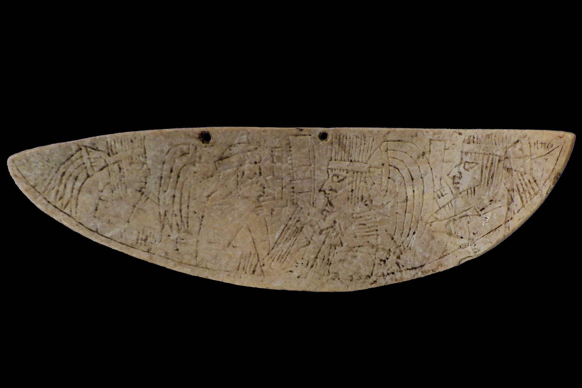 La gargantilla, que fue elaborada de caracola, cuenta con la representación esgrafiada de cuatro personajes y mide 9.7 centímetros de largo y 2.9 centímetros de ancho, con un milímetro de grosor y una forma semielíptica o semilunar.