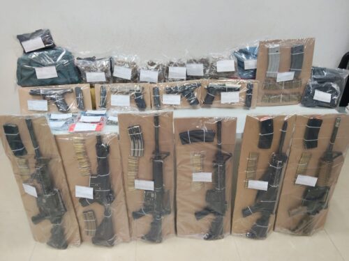 Durante la inspección, los elementos aseguraron hierba verde y seca con las características de la marihuana, armas de fuego cortas, teléfonos celulares y, en el interior de un vehículo tipo Aveo, encontraron armas largas, cartuchos útiles y cargadores metálicos, además de dos personas más que también portaban drogas.