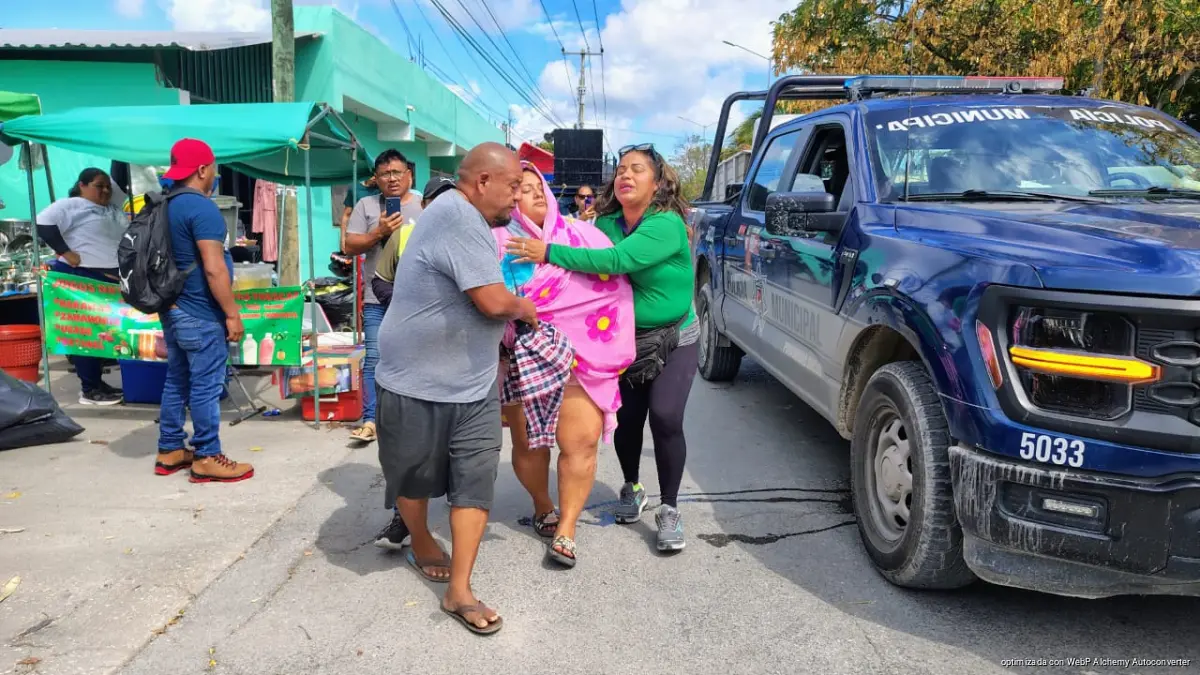 Ante la tardanza de los servicios médicos, personas que se encontraban en el lugar trasladaron a la mujer en una camioneta particular, mientras una patrulla escoltaba el vehículo hasta el Hospital General de Cancún, donde recibió atención médica.