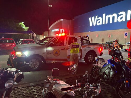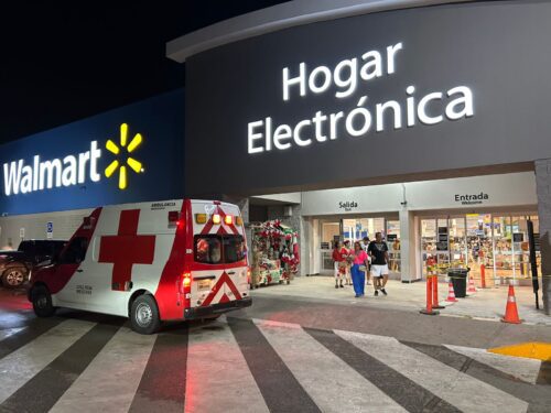 El hecho ocurrió en la tienda Walmart, ubicada entre las avenidas 115 y Colosio. De acuerdo con testigos, el ciudadano primero resbaló en un charco de agua en el estacionamiento del establecimiento, donde fue auxiliado por vendedores ambulantes. Pese a la caída, ingresó al lugar acompañado de su esposa para realizar sus compras.