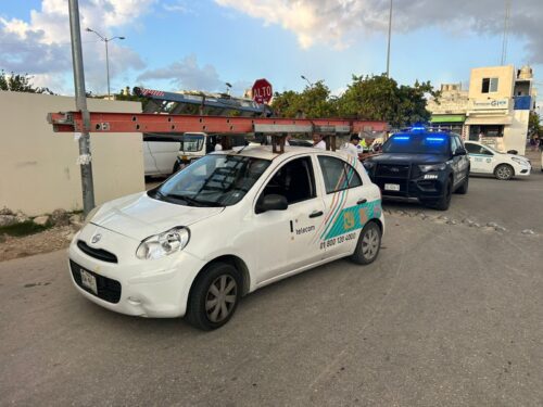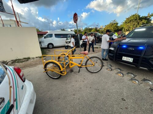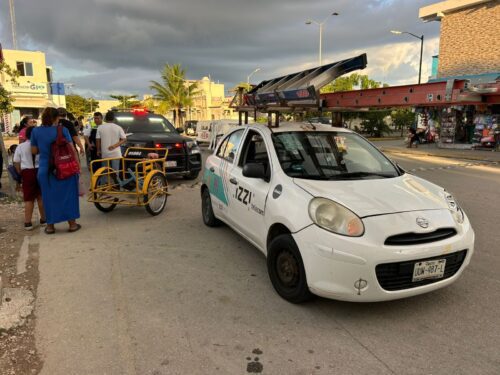 Playa del Carmen, Quintana Roo, 13 de diciembre de 2025.-Un hombre y una menor de edad fueron trasladados al hospital luego de resultar lesionados en un accidente ocurrido la mañana de este viernes en el fraccionamiento Villas del Sol, cuando el triciclo en el que viajaban fue impactado por un vehículo perteneciente a la empresa Izzi.