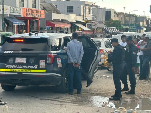 Elementos de Tránsito Municipal detuvieron al conductor del vehículo involucrado, quien quedó a disposición de las autoridades mientras se logra un acuerdo para la reparación de los daños y se deslindan responsabilidades.