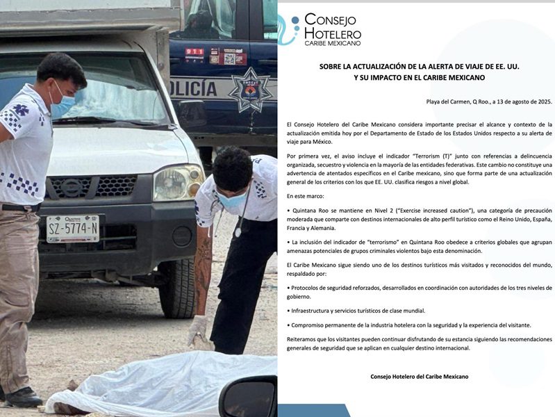 “El Consejo Hotelero del Caribe Mexicano considera importante precisar el alcance y contexto de la actualización emitida hoy por el Departamento de Estado de los Estados Unidos respecto a su alerta de viaje para México.