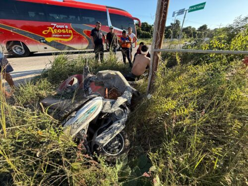PLAYA DEL CARMEN, Quintana Roo, 23 de noviembre de 2025.— Huye el conductor de un vehículo tras impactar a un motociclista en la carretera federal 307, a la altura del hotel Hard Rock, dejando a la víctima abandonada en el lugar. El motociclista circulaba en dirección al sur a bordo de una Italika 125 color negro cuando fue golpeado por un automóvil rojo cuyo conductor no se detuvo y continuó su marcha.