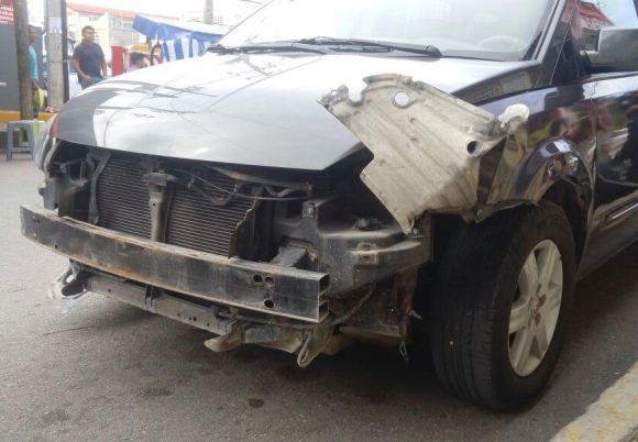 Al impactarse el conductor de la moto se enganchó en la defensa de la camioneta desprendiéndola, al momento que tanto él como la mujer que lo acompañaba salían disparados contra el pavimento.