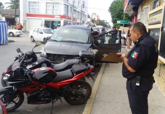 PLAYA DEL CARMEN, Quintana Roo, 14 de diciembre.- Una vez más, tras ignorar las señales de alto, una camioneta impacto a dos personas a bordo de una motocicleta, el martes pasado en el centro de la ciudad.