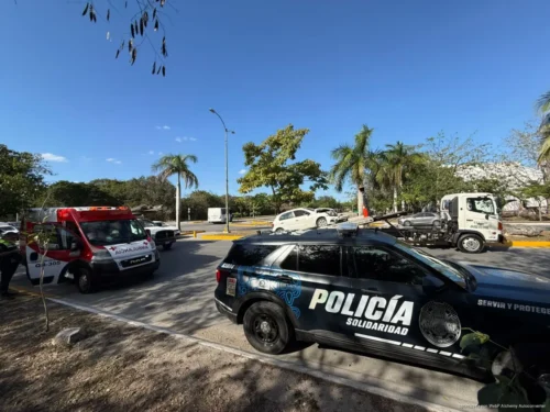 PLAYA DEL CARMEN, Quintana Roo, 26 de febrero de 2026.- Un conductor que presuntamente no respetó el señalamiento de alto provocó un fuerte accidente la tarde de este miércoles en el cruce de la avenida Paseo Central y calle 125, dejando como saldo dos personas con golpes contusos y cuantiosos daños materiales.