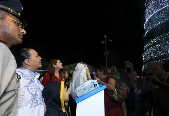 PLAYA DEL CARMEN, Quintana Roo, 3 de diciembre.- La Presidenta Municipal de Solidaridad, Cristina Torres Gómez, y la Presidenta Honoraria del DIF, Claudia Torres Gómez, encendieron las luces del Árbol Navideño en la Plaza Cívica “28 de Julio”, con lo que oficialmente inició la temporada decembrina en Solidaridad.