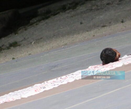 CANCÚN, Quintana Roo, 07 de mayo. – Encuentran CABEZA HUMANA decapitada en una cancha de básquetbol en Cancún: también dejan una narco manta en el lugar de los hechos.