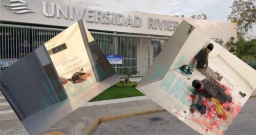 La madrugada de este miércoles la Policía Municipal fue alertada de un violento atracó en la escuela “Universidad Riviera Maya” ubicado en la avenida CTM con calle Flor de Nochebuena del fraccionamiento Real Ibiza, en donde al arribar observaron una tómbola (caja de seguridad) en el área verde y al ingresar se percataron de dos personas ensangrentadas amarrados de pies y manos.