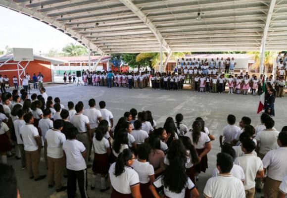 PLAYA DEL CARMEN, Quintana Roo, 25 de Junio.-   En Playa del Carmen, más de 800 estudiantes de dos escuelas públicas de nivel básico serán beneficiados con la “Estrategia 2.1.- Implementar medidas que disminuyan factores de riesgo de que niñas y niños vivan situación de violencia y delincuencia”, el cual fue inaugurado la mañana del lunes en la Escuela Secundaria “José España Cruz”.
