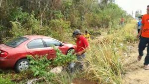 PLAYA DEL CARMEN, Quintana Roo, 19 de abril.- Otra víctima más de su propia imprudencia al tomar una curva sobre el arco vial pasando la avenida Constituyente, a exceso de velocidad con el concreto mojado, ese fue el desenlace de conductor de un auto de color rojo tipo Neón con matrícula del estado de Veracruz, donde solo se registraron pérdidas materiales.