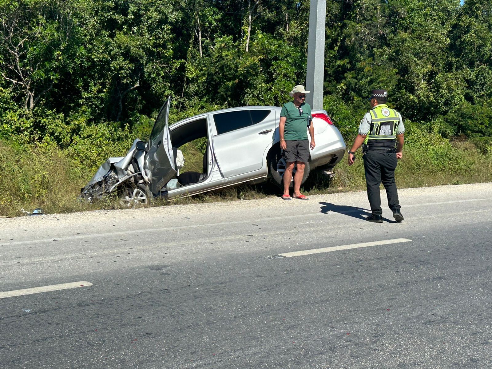 Alrededor de las 11:45 de la mañana, el conductor de un Nissan Versa, con placas YYJ 980 D, color gris, iba una alta velocidad en dirección hacia el sur sobre la carretera y al llegar al kilómetro 281, en la zona conocida como Punta Venado, no se percató de que había una fila de vehículos debido a que están instalando las luminarias que se quitaron por los trabajos del primer proyecto por donde pasaría el del Tren Maya, que fue modificado.