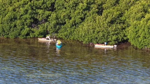 En tanto, en la zona acuática, decenas de embarcaciones recorrieron distintos puntos, incluidos canales y áreas de difícil acceso, donde recolectaron plásticos, latas y líneas de pesca, que representan un riesgo para la fauna local.