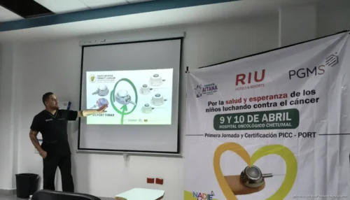 Quintana roo, 10 de abril de 2026.-Con una inversión de 146 mil pesos, la Fundación Aitana impulsa la instalación del PICC-Port, convirtiendo al Hospital Oncológico del IMSS-Bienestar en el primero en certificarse y capacitarse en Quintana Roo con esta tecnología, beneficiando a 12 niñas, niños y adolescentes con cáncer que enfrentan tratamientos de quimioterapia prolongados con menos dolor y mayor seguridad.