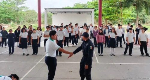 La capacitación se impartió en el Colegio de Bachilleres de Puerto Morelos, donde el supervisor Norberto Estrada Meza, comandante del escuadrón Jaguar Juvenil, junto con elementos de apoyo, brindó instrucción técnica a 120 estudiantes, quienes participaron en dos sesiones, logrando una cobertura integral en la comunidad escolar.