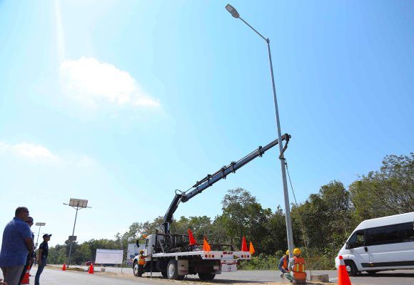 Este sábado también iniciaron los trabajos para la instalación de luminarias sobre la Prolongación Luis Donaldo Colosio que abarcará 1.7 kilómetros de longitud beneficiando a los vecinos de las colonias Real Ibiza, Real Bilbao, Galaxia, Los Olivos, Natura y Villas del Sol, así como a quienes utilizan la vía Playa del Carmen-Tintal.