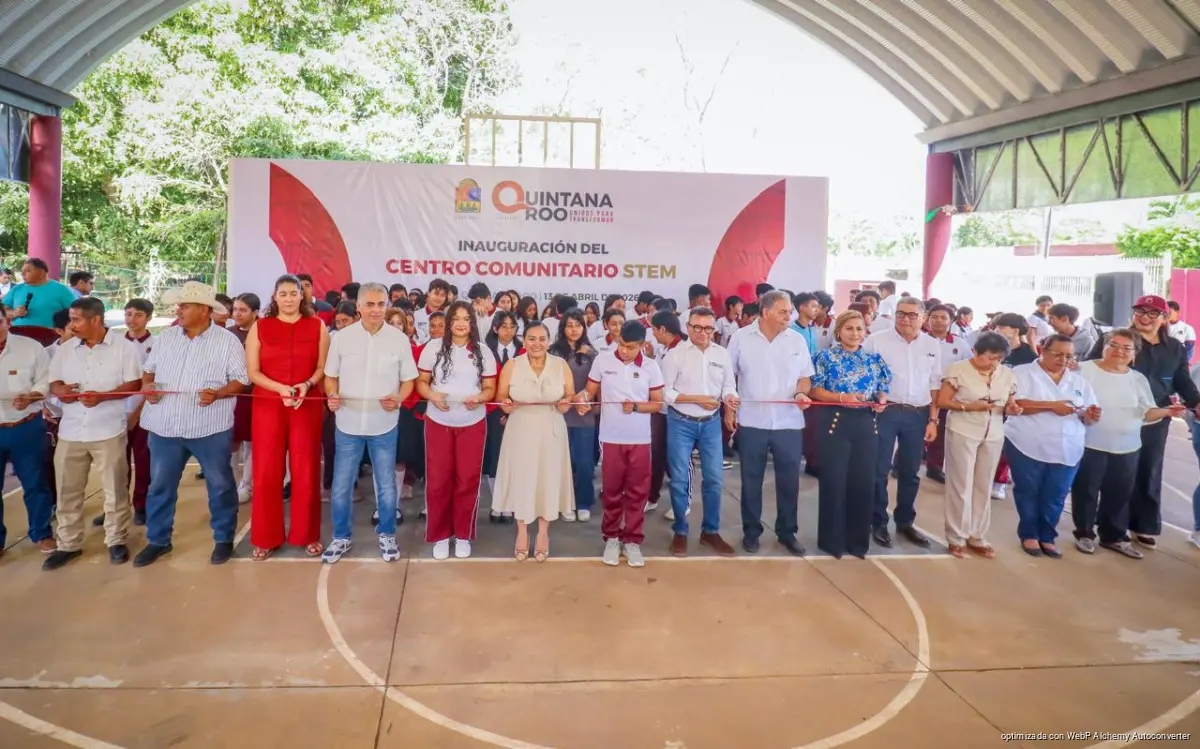 Chetumal. 13 de abril de 2026.- La secretaria de Educación, Elda Xix Euán, encabezó la inauguración del Centro Comunitario STEM en la telesecundaria “Vicente Guerrero” de la comunidad de Pucté, Ribera del Río Hondo del municipio de Othón P. Blanco, convirtiéndose en el primero en su tipo en educación básica, y también el primero en la Península de Yucatán, mediante la habilitación de infraestructura tecnológica, equipamiento especializado y estrategias educativas innovadoras.