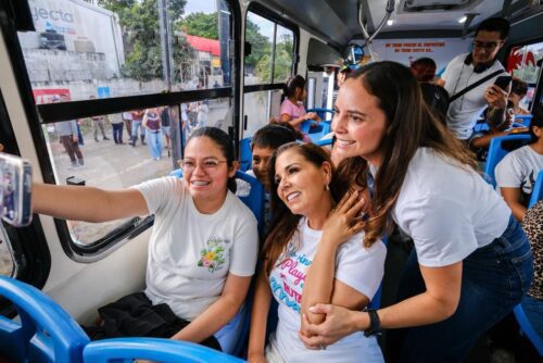 Cancún.– Con el objetivo de garantizar el derecho a la movilidad y al disfrute de los espacios públicos, la gobernadora Mara Lezama Espinosa y la presidenta municipal de Benito Juárez, Ana Paty Peralta, dieron el banderazo de inicio del programa municipal “Ruta Mar”, un nuevo servicio de transporte gratuito que permitirá a las y los cancunenses trasladarse de manera rápida y segura a las playas de la ciudad.