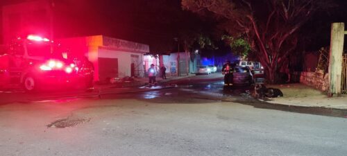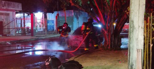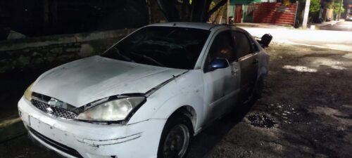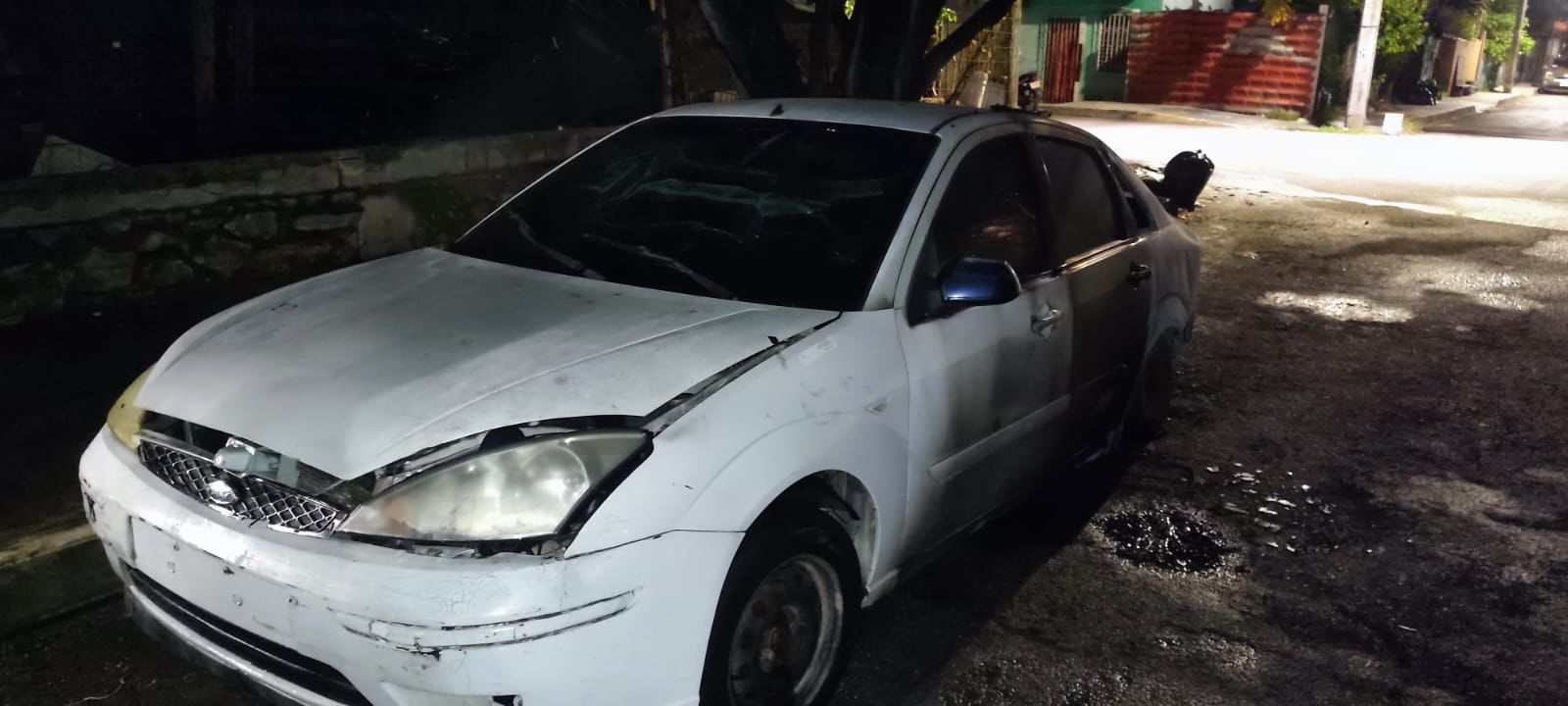 Playa del Carmen, Q. Roo, 14 de junio de 2025 — Un vehículo fue incendiado de manera intencional durante la madrugada de este sábado en la colonia Ejido, presuntamente por sujetos que lanzaron un artefacto explosivo mientras circulaban a bordo de otro automóvil.