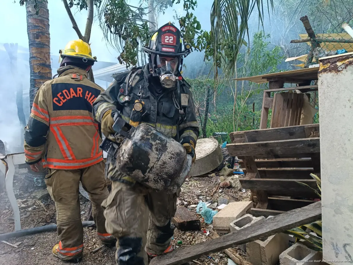 COZUMEL, Quintana Roo, 04 de abril de 2026.- Un incendio registrado en una estructura provisional construida con láminas de zinc y madera, ubicada sobre la carretera Transversal, fue controlado de manera oportuna por elementos de Protección Civil, Bomberos y Guardavidas, sin que se reportaran personas lesionadas.