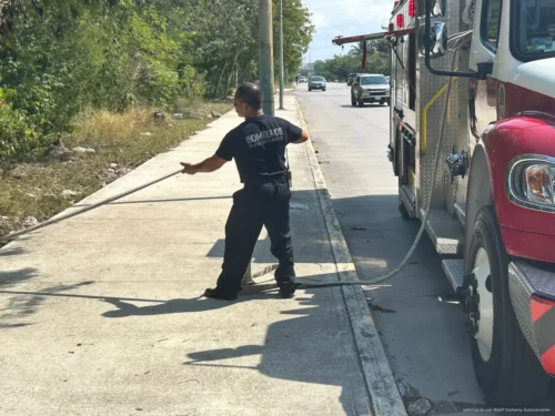 PLAYA DEL CARMEN, Quintana Roo, 13 de febrero de 2026.– Un incendio en un predio baldío de la colonia Cruz de Servicios movilizó al Heroico Cuerpo de Bomberos la tarde de este jueves, luego de que el fuego se saliera de control en un campamento improvisado por personas en situación de calle.