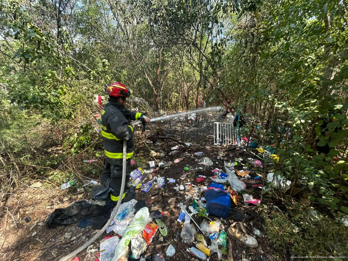 De manera preliminar se informó que el siniestro inició cuando intentaban preparar alimentos y el fuego alcanzó un colchón, propagándose rápidamente entre los desechos acumulados.