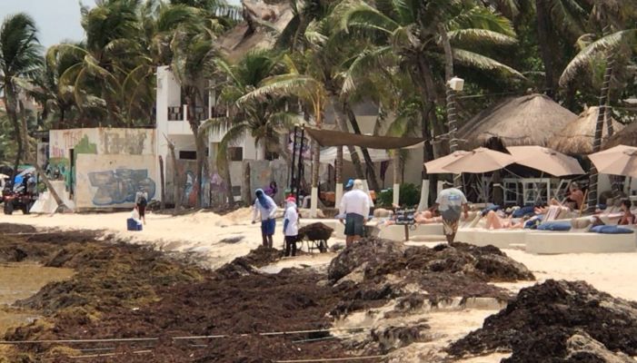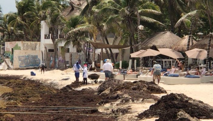 La alcaldesa informó que trabajan de manera permanente 150 trabajadores en la recolección del sargazo a largo de la franja costera de Solidaridad además de la maquinaria permitida por la Secretaría de Media Ambiente y Recursos Naturales (Semarnat).