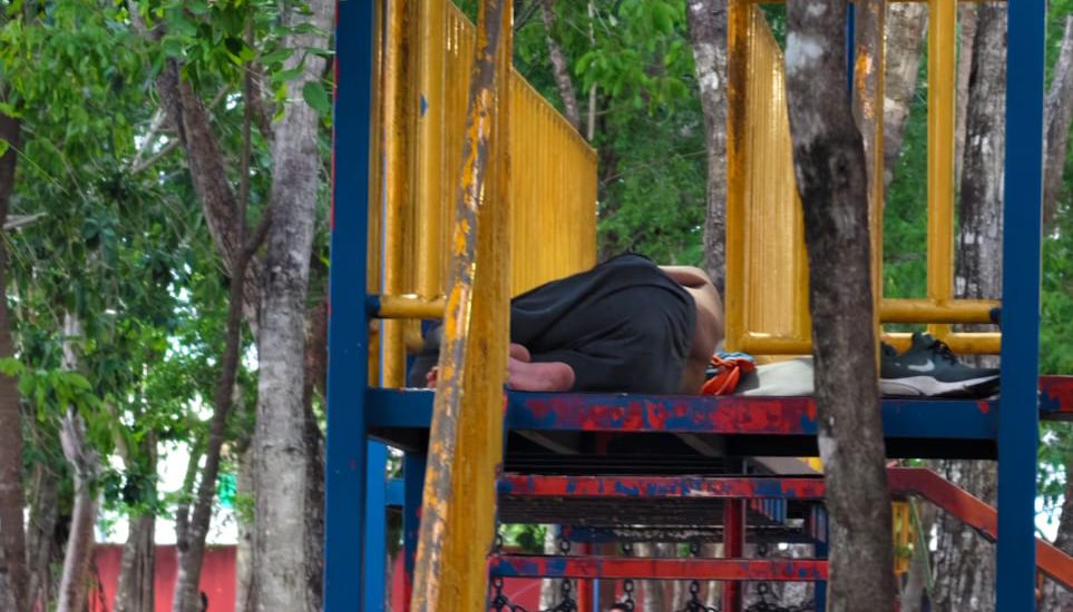 PLAYA DEL CARMEN, Quintana Roo, 17 de junio. – Habitantes del fraccionamiento Villas del Sol han denunciado la presencia constante de una persona en situación de calle que utiliza los juegos infantiles del primer parque del fraccionamiento para dormir, drogarse, consumir alcohol e incluso realizar sus necesidades fisiológicas, sin que las autoridades actúen pese a los múltiples reportes al 911.
