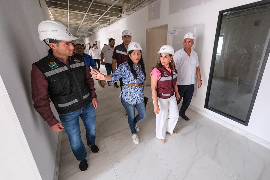 Durante el recorrido, Mara Lezama informó que la obra presenta un avance del 63% y es un esfuerzo conjunto financiado con recursos federales y estatales a través de la Fiscalía General del Estado.