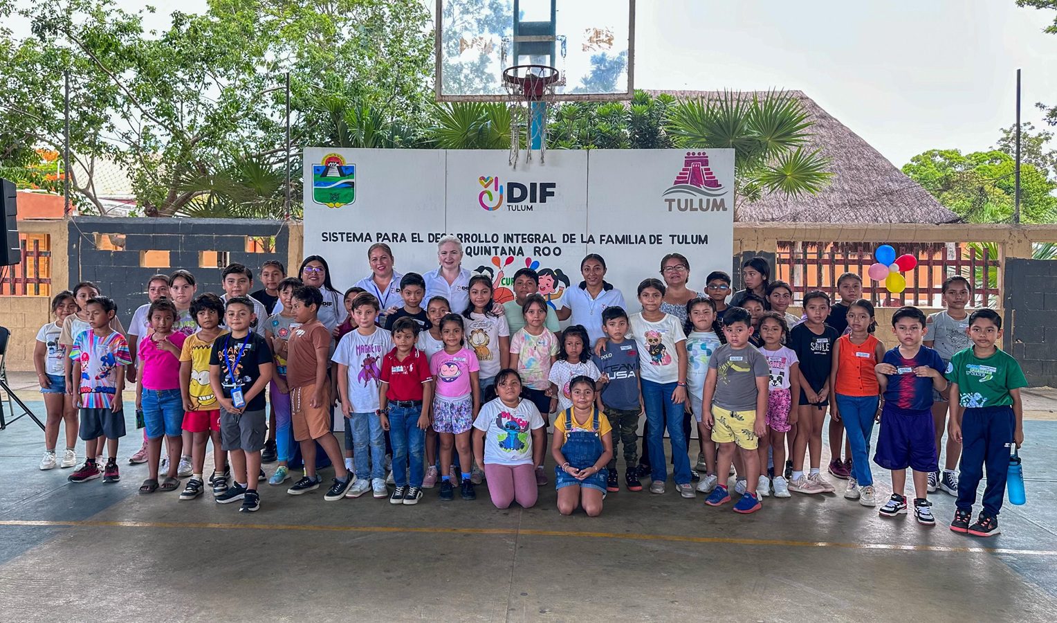 Tulum, Quintana Roo a 4 de agosto de 2025. En un ambiente seguro y divertido, más de 40 niñas y niños de Tulum acudieron al Domo del parque de la colonia Tumben Kaa para ser parte del curso “Un verano creativo y divertido”, que comenzó este 4 de agosto en punto de las 9 de la mañana, encabezado por la C.P. Belia Beltrán Aguilera, directora general del Sistema para el Desarrollo Integral de la Familia de Tuluma (DIF).
