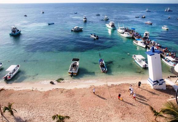PUERTO MORELOS, Quintana Roo, 6 de mayo.- Temprano este sábado la presidenta municipal Laura Fernández Piña dio el tradicional “cornetazo” para la salida de las embarcaciones del VIII Torneo de Pesca Deportiva “Don Andrés García Lavín”, en el muelle de pescadores a un costado del faro inclinado de Puerto Morelos.