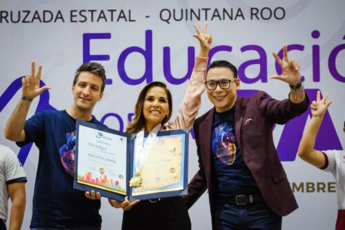Cancún.- Quintana Roo se convirtió hoy en el iniciador de la Red Universal por la Paz América 2030 (RUNI PAZ) en México, en el marco del lanzamiento del programa “Mentes Brillantes: Del Cerebro a la Emocionalidad de Construir la Paz”, con la presencia de la gobernadora Mara Lezama Espinosa y el Rector Head Master del Corporativo de Inteligencia Educa (CIE) y CEVER Siglo XXI, Eduardo Carreón Muñoz.
