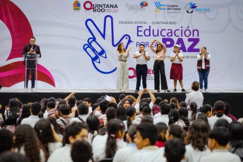 Al dirigirse a las y los asistentes, acompañada de la presidenta honoraria del Sistema DIF Quintana Roo, Verónica Lezama Espinosa, la titular del Ejecutivo subrayó que “construir la paz es tarea de todas y todos”, y que este proceso inicia en el interior de cada persona, mediante el desarrollo de la inteligencia emocional, el autoconocimiento y la empatía.