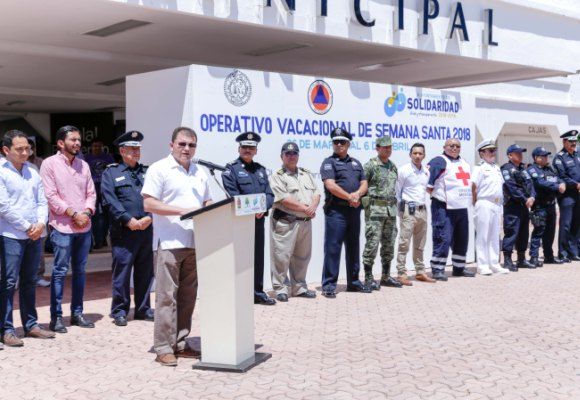 PLAYA DEL CARMEN, Quintana Roo, 27 de marzo.- Más de 350 elementos operativos de diversas instancias municipales, estatales y federales, coordinarán acciones de prevención, protección y vigilancia en Solidaridad como parte del operativo vacacional “Semana Santa 2018”, el cual inició hoy y finalizará el próximo lunes 9 de abril.