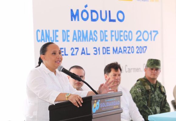 Asimismo, hizo un reconocimiento público a la Presidenta Municipal, Cristina Torres Gómez, al gestionar que el programa de Canje de Armas se llevara a cabo en Solidaridad. Es importante destacar que tanto las armas como municiones que se entregan en la campaña son destruidas por la SEDENA. Esta colecta finalizará el 31 de marzo.