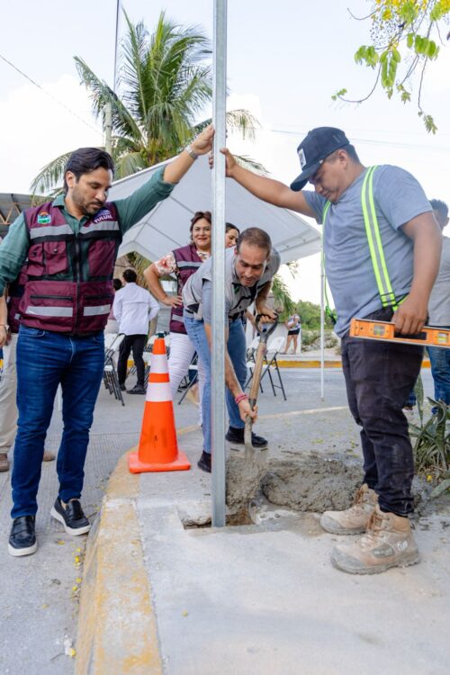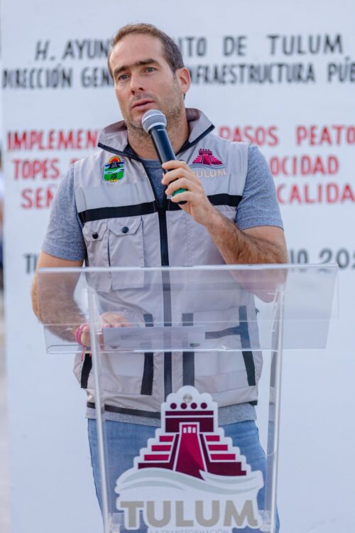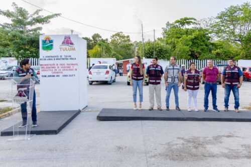 Tulum, Quintana Roo a 12 de junio del 2025.- Chemuyil también es parte de la transformación con el inicio de construcción de pasos peatonales, topes, reductores de velocidad y señaléticas, obra de gran relevancia que dignifica a las y los habitantes de esta localidad, por lo que fue el presidente municipal, Diego Castañón Trejo quien encabezó el banderazo de salida de la maquinaria.