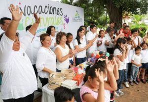 PUERTO MORELOS, Quintana Roo, 8 de julio.- El gobierno de la presidenta municipal Laura Fernández Piña puso en marcha el programa “Vacaciones Culturales” en la delegación de Leona Vicario que tendrá una duración de cuatro semanas, un espacio en el que los niños de diversas edades disfrutarán del asueto escolar y complementarán sus conocimientos mediante juegos, convivencia y aprendizaje de manualidades.