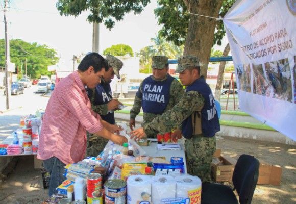 Como parte del Plan Marina, implementado por la institución a fin de atender las zonas de desastre en Oaxaca, Chiapas, Morelos, Ciudad de México, Puebla y Guerrero, y recolectar víveres en diferentes puntos del país, los marinos instalaron en la Zona Norte del estado cuatro centros de acopio, tres en Cancún y uno más en este municipio.