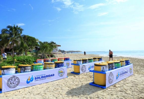 PLAYA DEL CARMEN, Quintana Roo, 12 de septiembre.- El Gobierno de Solidaridad, encabezado por la Presidenta Municipal, Cristina Torres Gómez, instaló 100 contenedores de basura en diferentes accesos a playas públicas, los cuales fueron reciclados por la dirección de ZOFEMAT a partir de boyas inservibles.
