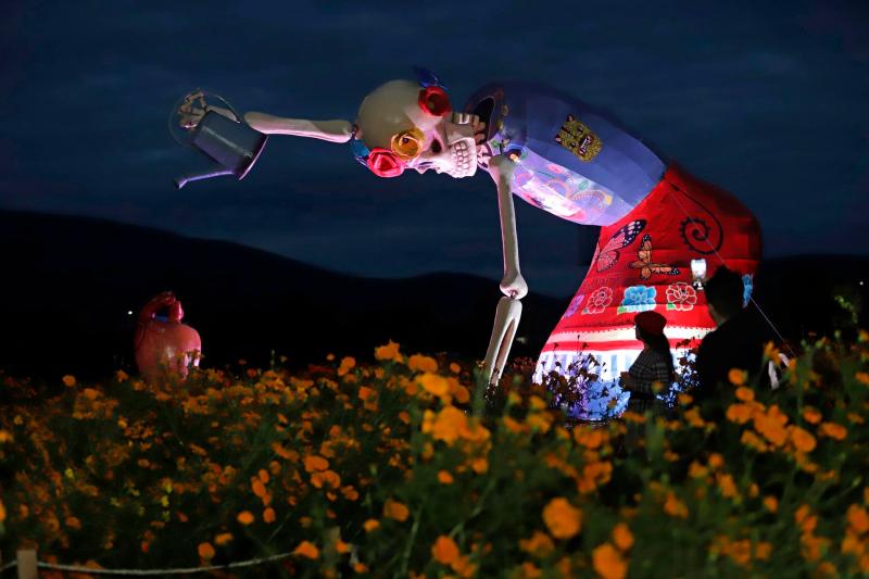 Una decena de calaveras gigantes se instalaron en el municipio de Atlixco, en el estado de Puebla, previo al Día de Muertos, tradición que en México se celebra el 1 y 2 de noviembre.