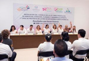 PUERTO MORELOS, Quintana Roo, 16 de febrero.- La presidenta municipal Laura Fernández Piña instaló esta tarde el Sistema de Protección Integral de Niñas, Niños y Adolescentes (SIPPINA) de Puerto Morelos y el Consejo de la Ley de Prestación de Servicios, Atención, Cuidado y Desarrollo Infantil.