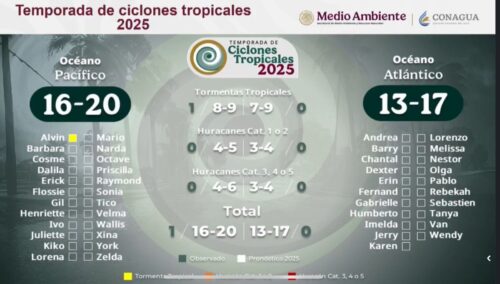 “Hasta el momento es que vamos a tener una temporada de precipitaciones cercana a la normal, de 16 a 20 para el pacífico y de 13 a 17 en el Atlántico”, indicó la directora local de Conagua, Erika Ramírez Méndez.