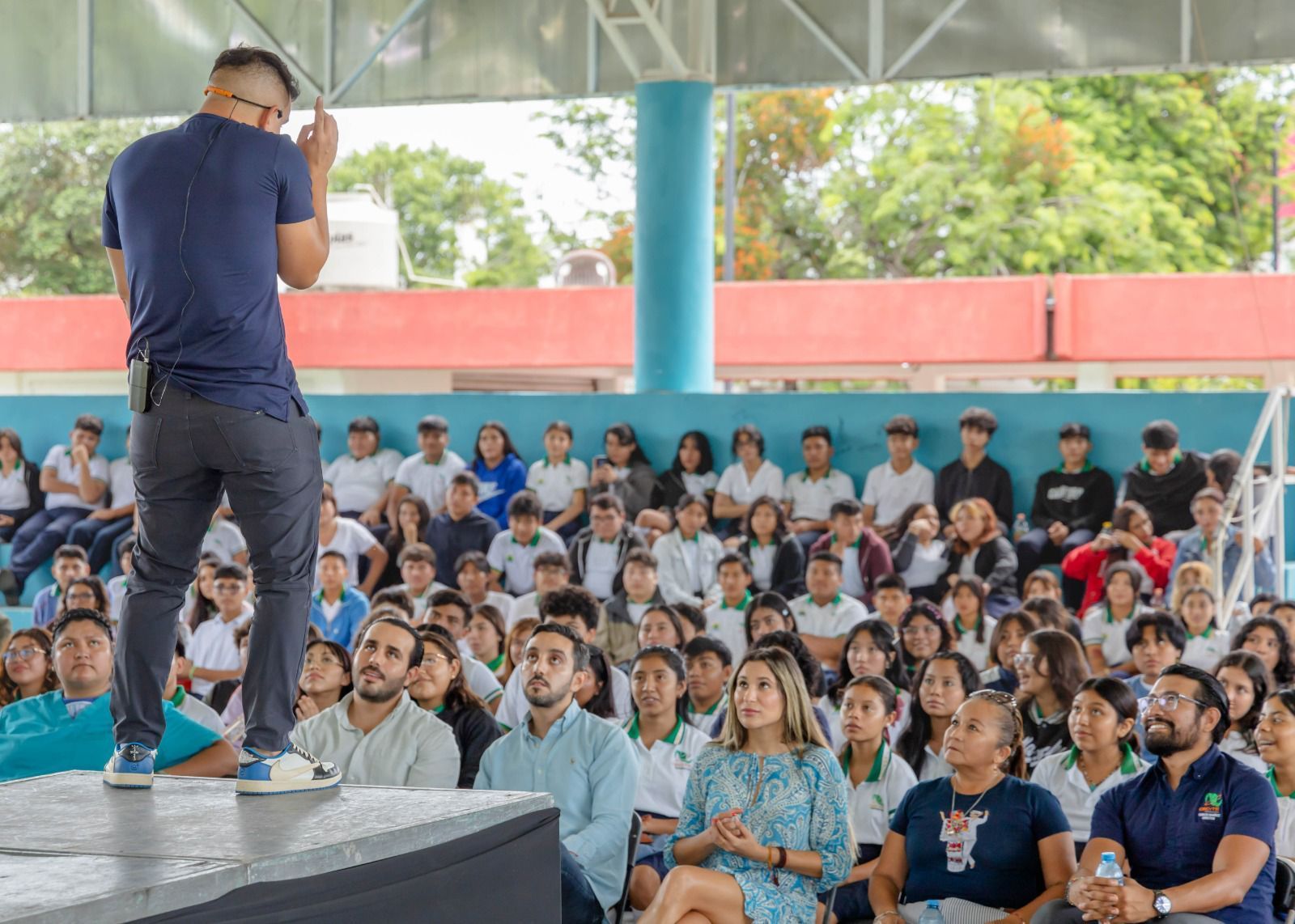 TULUM, Quintana Roo 25 de agosto.- Exitosa y entretenida presentación del influencer, Germán Castelo, ante cientos de estudiantes del Cecyte, Tulum. Gracias a gestiones del presidente Municipal, Diego Castañón, este destacado conferencista ofreció un motivador mensaje a las nuevas generaciones.